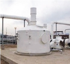 Standard active carbon absorber are a common odour control technology. The basic objective of the carbon adsorbers is to act as dry adsorbtion filter for odorous air before emitting to the atmosphere. The odorous compounds are adsorbed to the surface of the carbon, which has a high surface to volume ratio. The carbon is then replaced or generated when it became saturated and odour breakthrough occurs. Carbon adsorbers are typically used for flow concentration airstreams. They may be used either for primary odour control or for polishing stage following chemical scrubber or biological treatment system. They maybe cost prohibitive for high concentration applications due to high cost of carbon. Carbon adsorbers typically included fibreglass vessel, which house carbon between perforated plates. A fan draws or pushes the air through the carbon adsorbers. Air containing odorous compounds enters the bottom of the vessel and travels to the outside stack of active carbon scrubber. The clean treated air then passes through granular carbon active and filter carbon active to remove entrained odour. The air then moves radially through a center located radial flow carbon vessel and discharged out the top for highly effective complete odour control. Carbon adsorbers are easy to be installed and maintained, required no chemical storage or handling, required a relatively small footprint, and typically guarantee 99% hydrogen sulphide removal efficiencies. Disadvantages include the high cost of the carbon and the required disposal of used carbon. Carbon is also not recommended with high moisture air, which saturated the carbon bed quickly. Carbon is commonly used in remote location such as pumping station wet wells. However, when humidity levels are critical it may be considered to place a high efficiency demister unit before the carbon treatment units.